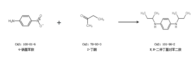 1.通過(guò)4-硝基苯胺和2-丁酮合成N,N-二仲丁基對(duì)苯二胺
