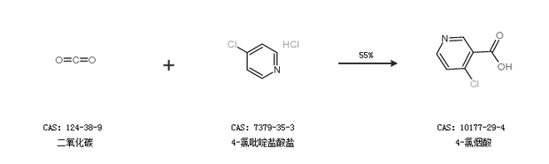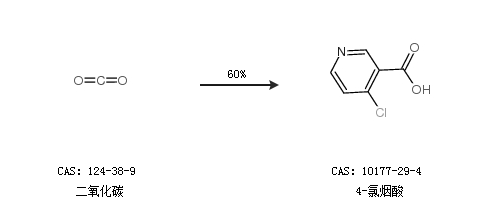 1.通過二氧化碳合成4-氯煙酸,收率約60%;