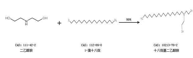 1.通過二乙醇胺和1-溴十八烷合成十八烷基二乙醇胺,收率約99%;