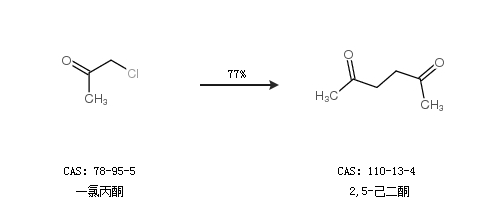 2.通過一氯丙酮合成2,5-己二酮,收率約77%;