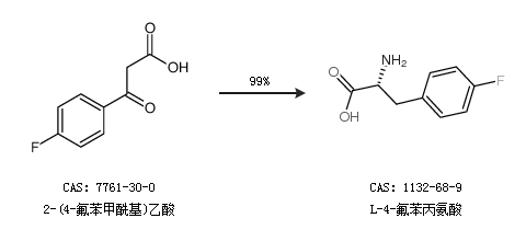 2.通過(guò)2-(4-氟苯甲?;?乙酸合成L-4-氟苯丙氨酸,收率約99%;