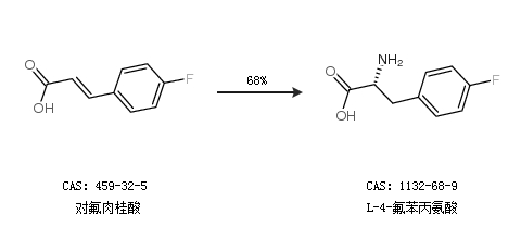 1.通過(guò)對(duì)氟肉桂酸合成L-4-氟苯丙氨酸,收率約68%;