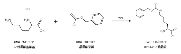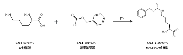 1.通過L-賴氨酸和氯甲酸芐酯合成N6-Cbz-L-賴氨酸,收率約87%;