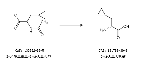 1.通過(guò)2-乙酰基氨基-3-環(huán)丙基丙酸合成D-環(huán)丙基丙氨酸