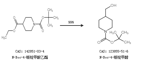 1.通過N-Boc-4-哌啶甲酸乙酯合成N-Boc-4-哌啶甲醇,收率約99%;