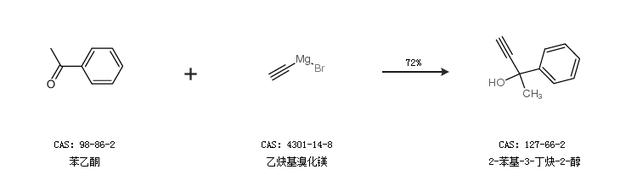 1.通過苯乙酮和乙炔基溴化鎂合成2-苯基-3-丁炔-2-醇,收率約72%;