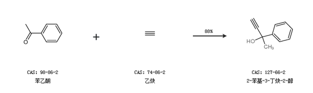2.通過苯乙酮和乙炔合成2-苯基-3-丁炔-2-醇,收率約88%;
