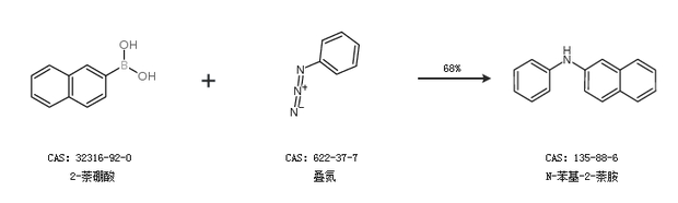 1.通過2-萘硼酸和疊氮合成N-苯基-2-萘胺,收率約68%;