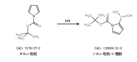 1.通過N-Boc-吡咯合成1-Boc-吡咯-2-硼酸,收率約69%;