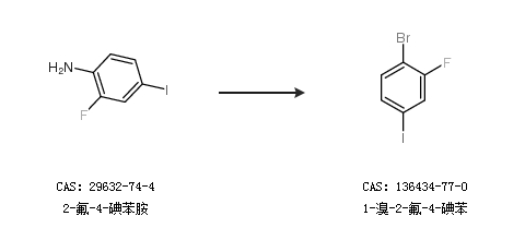 1.通過2-氟-4-碘苯胺合成1-溴-2-氟-4-碘苯