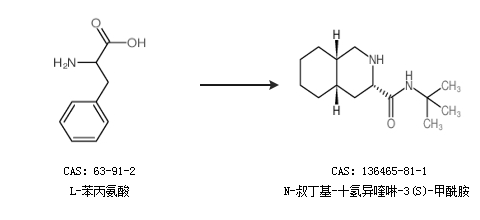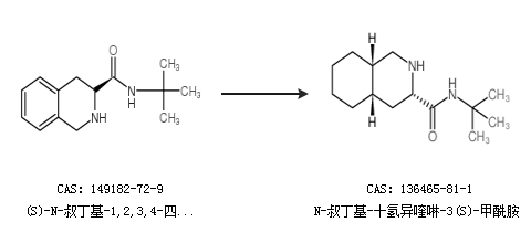 中文別名 S-十氫異喹啉-3-N-叔丁基甲酰胺;[3S-(3α,4aβ,8aβ)]-N-(叔丁基)十氫-3-異喹啉甲酰胺;N-(叔丁基)-十氫異喹啉-3-甲酰胺;[3S-(3ALPHA,4ABETA,8ABETA)]-N-(叔丁基)十氫異喹啉-3-甲酰胺;(S)-N-叔丁基十氫異喹啉-3-甲酰胺;3S,4AS,8AS-3-N-叔丁胺甲酰-十氫異喹啉;