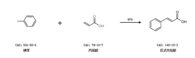 2.通過碘苯和丙烯酸合成反式肉桂酸,收率約97%;
