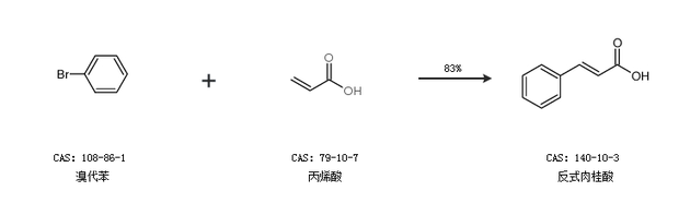 1.通過溴代苯和丙烯酸合成反式肉桂酸,收率約83%;