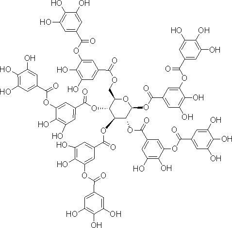 淡黃色無(wú)定型粉末或松散有光澤的鱗片狀或海綿狀固體,在210-215℃時(shí)大部分分解為焦性沒食子酸和二氧化碳。1g溶于0.35ml水、1ml熱甘油。無(wú)臭,可燃。遇清蛋白、淀粉、明膠及許多生物堿和金屬鹽類產(chǎn)生沉淀,遇鐵鹽也產(chǎn)生黑色或沉淀。自燃點(diǎn)526.6℃;半數(shù)致死量(兔,經(jīng)口)5.0g/kg。 單寧不是單一