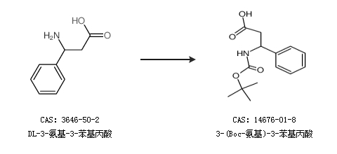 1.通過DL-3-氨基-3-苯基丙酸合成3-(Boc-氨基)-3-苯基丙酸,收率約93%;