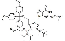 中文名:DMT-2 -O-TBDMS-G(dmf)-CE 亞磷酰胺單體