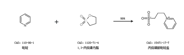 1.通過吡啶和1,3-丙烷磺內(nèi)酯合成丙烷磺酸吡啶鹽,收率約99%;