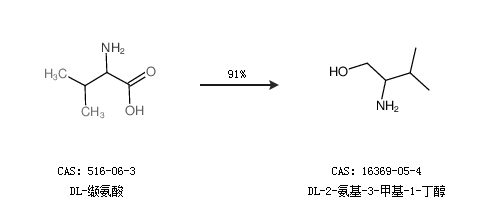 1.通過(guò)DL-纈氨酸合成DL-2-氨基-3-甲基-1-丁醇,收率約91%;