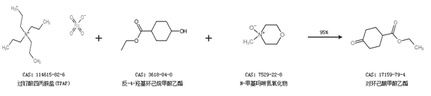 2.通過(guò)過(guò)釕酸四丙胺鹽(TPAP)、反-4-羥基環(huán)己烷甲酸乙酯和N-甲基嗎啉氮氧化物合成對(duì)環(huán)己酮甲酸乙酯,收率約95%;
