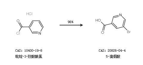 1.通過吡啶-3-羧酸酰氯合成5-溴煙酸,收率約96%;