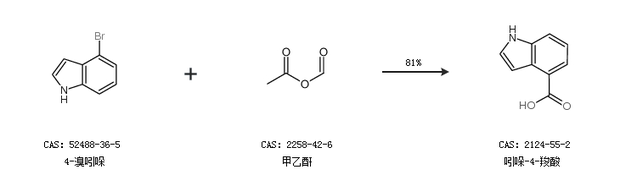 1.通過4-溴吲哚和甲乙酐合成吲哚-4-羧酸,收率約81%;