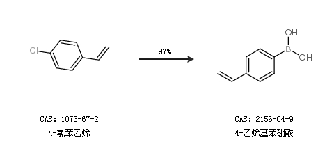1.通過4-氯苯乙烯合成4-乙烯基苯硼酸,收率約97%;