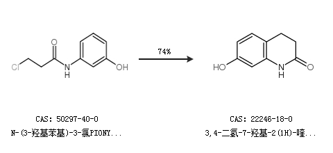 1.通過(guò)N-(3-羥基苯基)-3-氯PIONYL 胺合成3,4-二氫-7-羥基-2(1H)-喹啉酮,收率約74%;