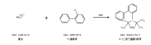 2.通過氨水和2-溴聯(lián)苯合成2-(二叔丁基膦)聯(lián)苯,收率約56%;