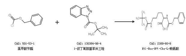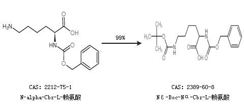 1.通過N-alpha-Cbz-L-賴氨酸合成Nε-Boc-Nα-Cbz-L-賴氨酸,收率約99%;