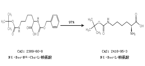1.通過(guò)Nε-Boc-Nα-Cbz-L-賴氨酸合成Nε-Boc-L-賴氨酸,收率約97%;