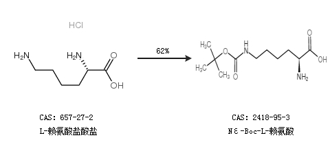 2.通過(guò)L-賴氨酸鹽酸鹽合成Nε-Boc-L-賴氨酸,收率約62%;