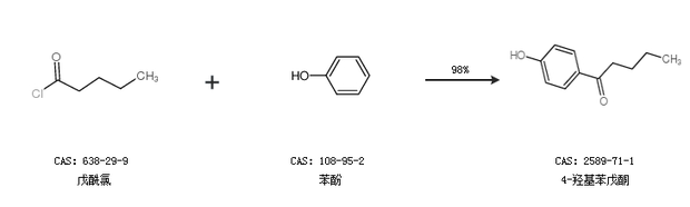 1.通過戊酰氯和苯酚合成4-羥基苯戊酮,收率約98%;
