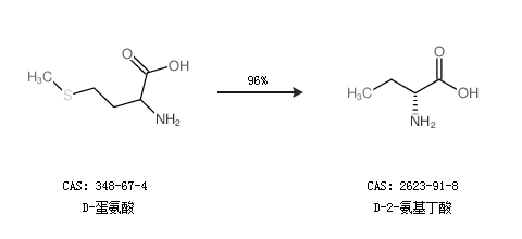 1.通過D-蛋氨酸合成D-2-氨基丁酸,收率約96%;