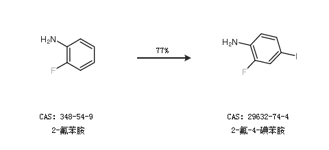 1.通過2-氟苯胺合成2-氟-4-碘苯胺,收率約77%;