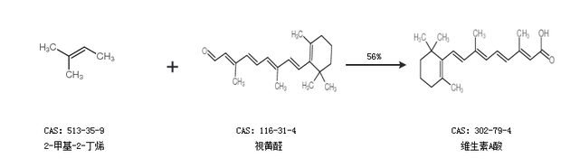 1.通過2-甲基-2-丁烯和視黃醛合成維生素A酸,收率約56%;