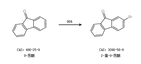 1.通過(guò)9-芴酮合成2-溴-9-芴酮,收率約96%;