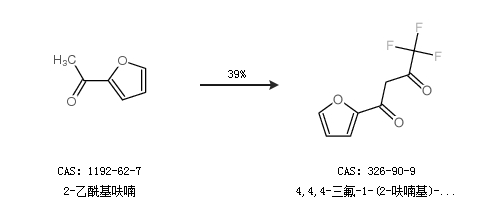 2.通過2-乙?;秽铣?,4,4-三氟-1-(2-呋喃基)-1,3-丁二酮,收率約39%;