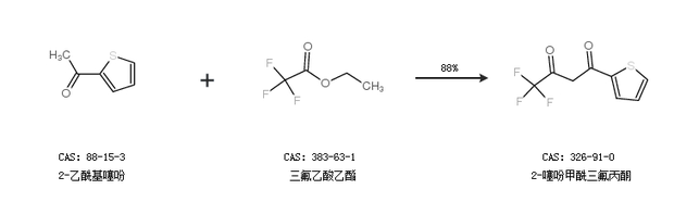 1.通過2-乙酰基噻吩和三氟乙酸乙酯合成2-噻吩甲酰三氟丙酮,收率約88%;