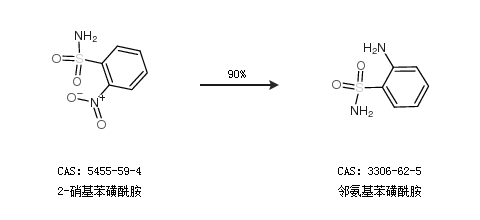 1.通過(guò)2-硝基苯磺酰胺合成鄰氨基苯磺酰胺,收率約90%;