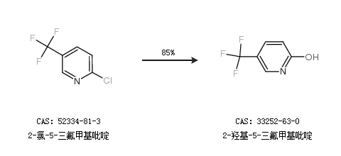 1.通過2-氯-5-三氟甲基吡啶合成2-羥基-5-三氟甲基吡啶,收率約85%;