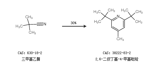 1.通過三甲基乙腈合成2,6-二叔丁基-4-甲基吡啶,收率約30%;