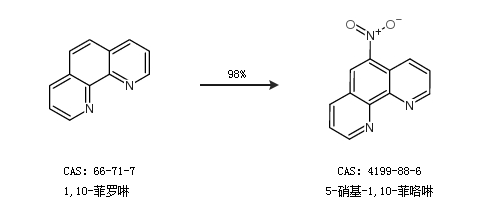 1.通過1,10-菲羅啉合成5-硝基-1,10-菲咯啉,收率約98%;