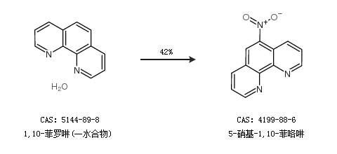 2.通過1,10-菲羅啉(一水合物)合成5-硝基-1,10-菲咯啉,收率約42%;