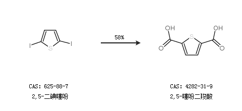 1.通過2,5-二碘噻吩合成2,5-噻吩二羧酸,收率約58%;