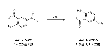 2.通過(guò)2,4-二硝基苯胺合成2-硝基-1,4-苯二胺,收率約46%;
