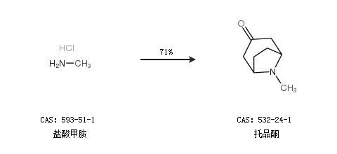 2.通過(guò)鹽酸甲胺合成托品酮,收率約71%;