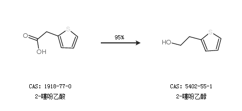 1.通過(guò)2-噻吩乙酸合成2-噻吩乙醇,收率約95%;