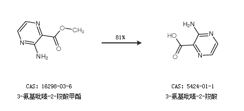 1.通過3-氨基吡嗪-2-羧酸甲酯合成3-氨基吡嗪-2-羧酸,收率約81%;