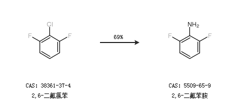 2.通過(guò)2,6-二氟氯苯合成2,6-二氟苯胺,收率約69%;