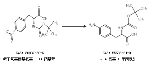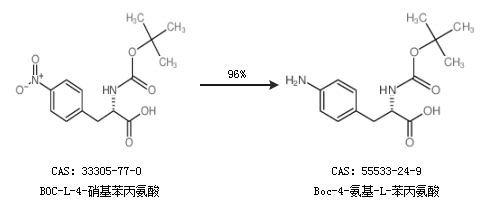 2.通過(guò)BOC-L-4-硝基苯丙氨酸合成Boc-4-氨基-L-苯丙氨酸,收率約96%;
